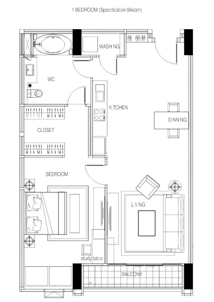 | 1 BEDROOM | 84m² |
