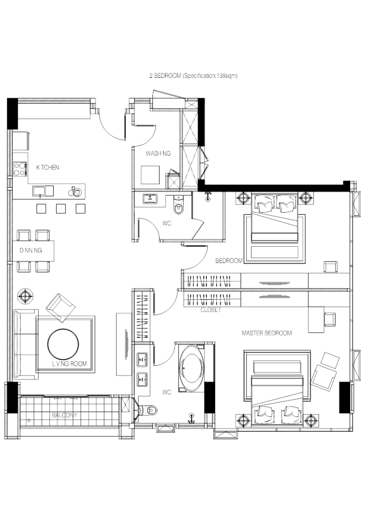 | 2 BEDROOM | 138m² |